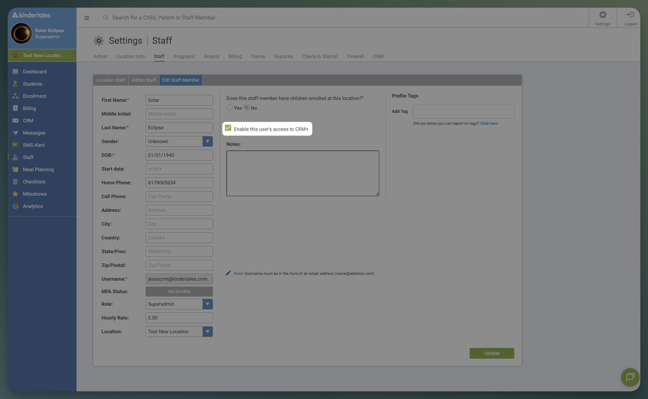 Enable CRM+ Access for a Staff Member